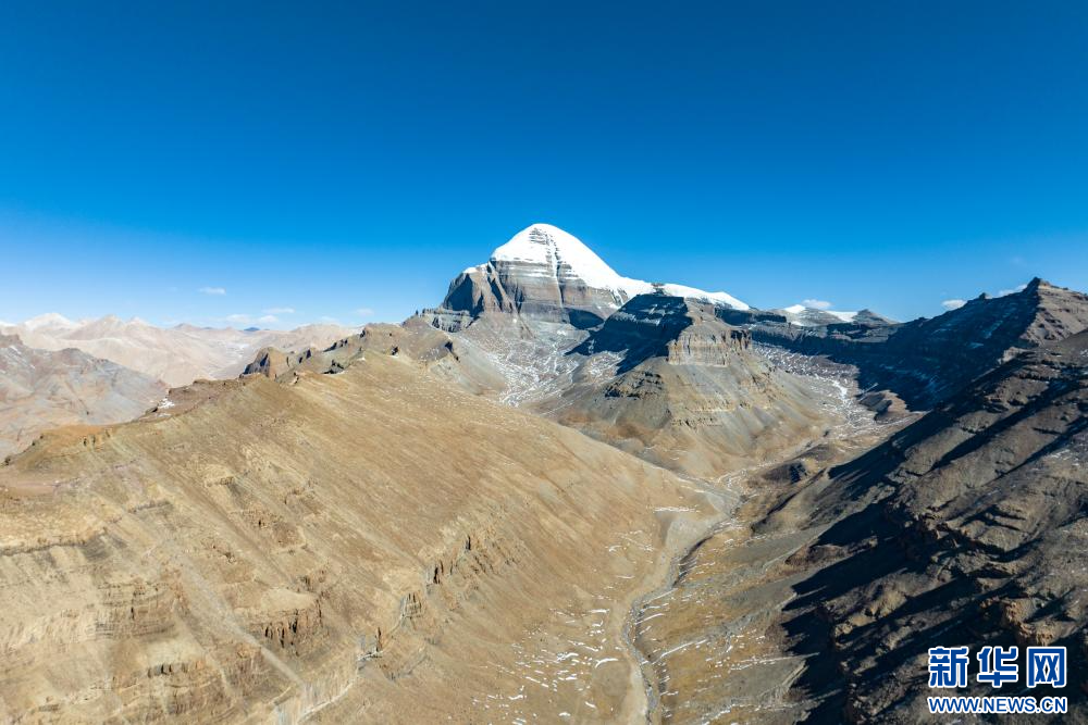 1月30日拍攝的岡仁波齊峰(無人機照片)。新華網(wǎng) 旦增努布 攝