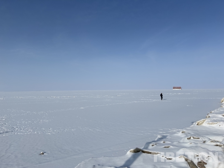 游客漫步在結冰的青海湖湖面 攝影:李一凡