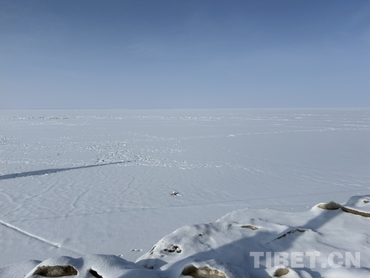 青海湖是我國面積最大的內(nèi)陸湖泊,湖岸線長約360公里。落雪后的湖面更是白茫茫一片,極目遠眺,水與天相接。天地間十分安靜,只余不太溫柔的風聲在耳側呼嘯而過。偶爾有游人在冰面走動,在白色的背景下顯得格外醒目。我們的無人機好像一只勇敢的沙鷗,翱翔在水天之間。(中國西藏網(wǎng) 文/李一凡 龍真多吉 張萌萌)