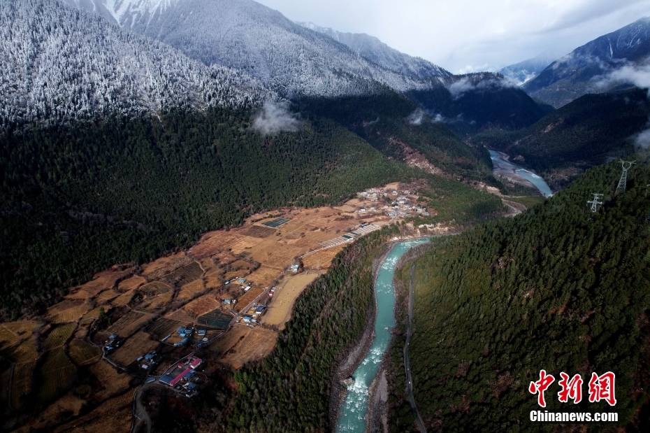 2月22日,航拍西藏林芝帕隆藏布雪景。林芝位于西藏東南部,平均海拔約3100米,氣候濕潤。(無人機照片)