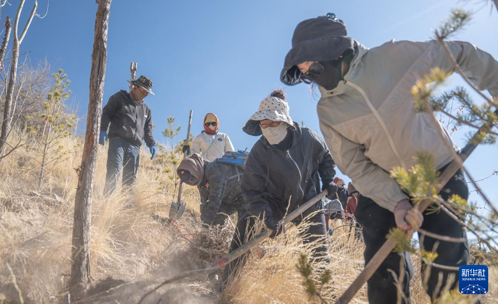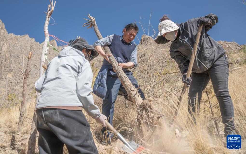 3月12日,東嘎社區(qū)二組村民在植樹(shù)。新華社記者 丁增尼達(dá) 攝 ??