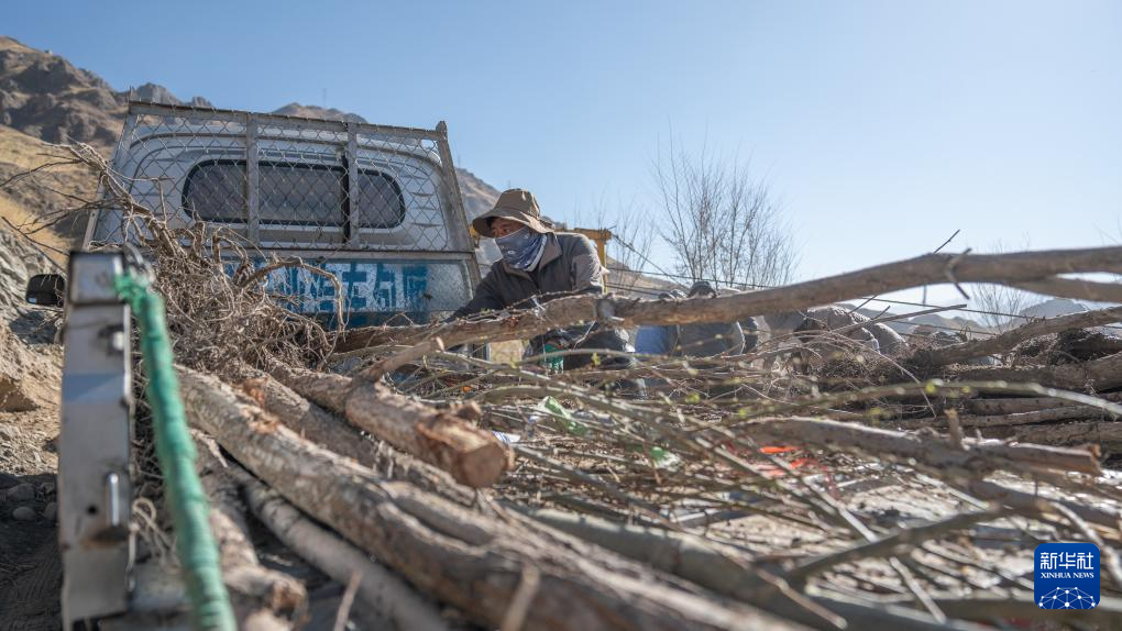 3月12日,東嘎社區(qū)二組村民在搬運(yùn)樹(shù)苗。新華社記者 晉美多吉攝 ??