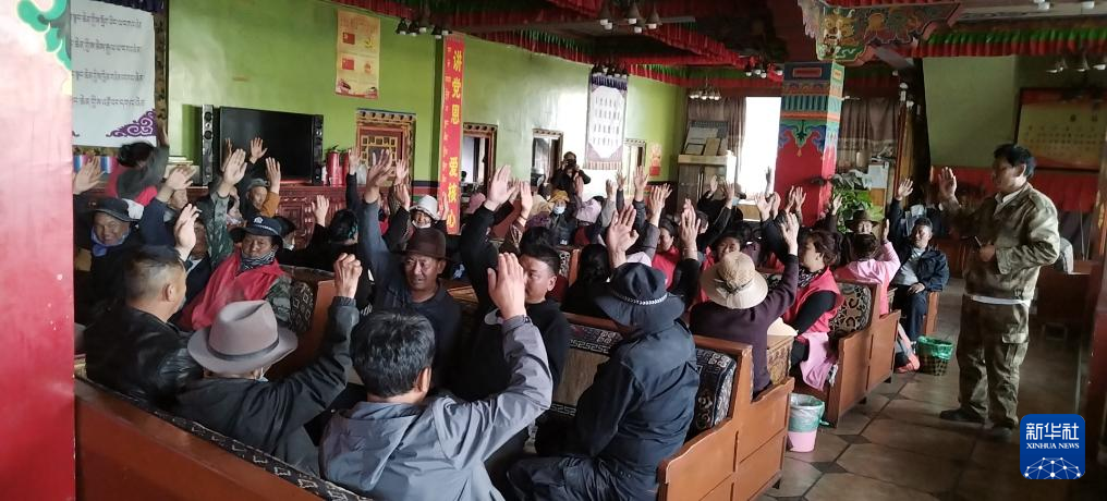 2013年1月,東嘎社區(qū)二組村民在組長(zhǎng)仁增的倡議下,舉手通過(guò)表決,決議開(kāi)展植樹(shù)造林活動(dòng)(受訪者供圖)。新華社發(fā)
