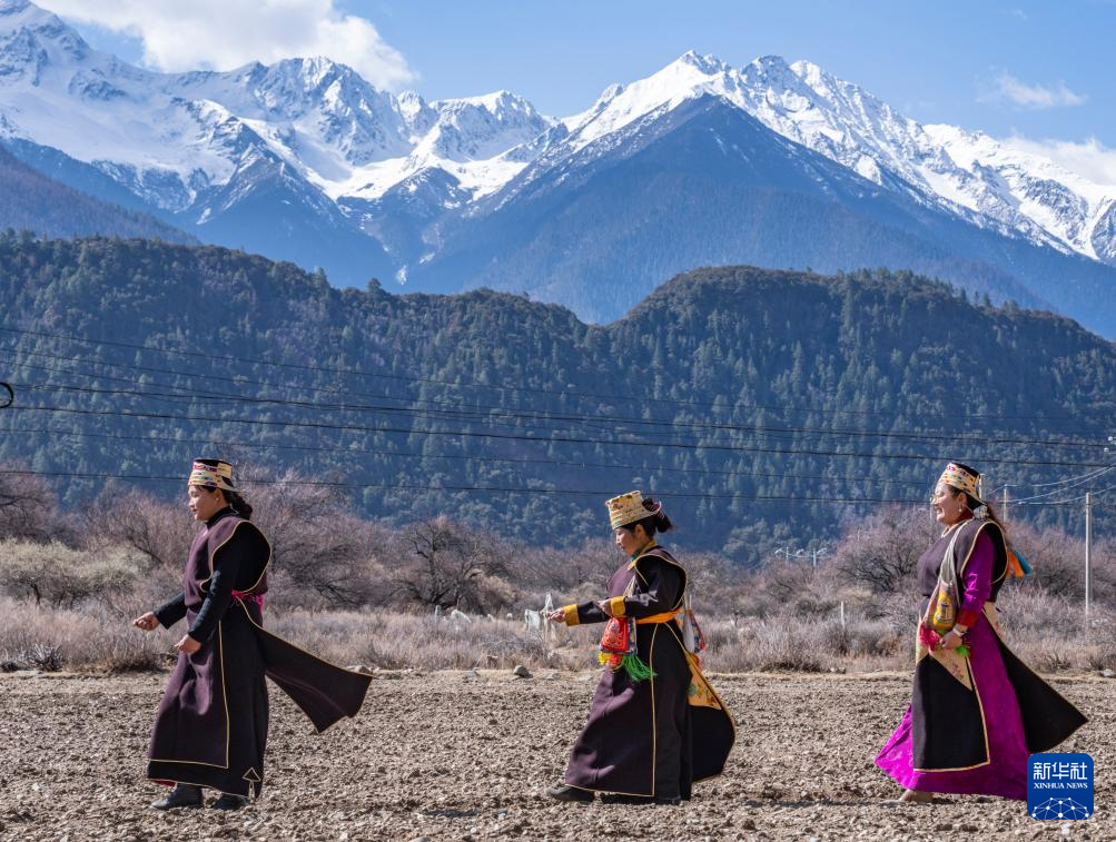 這是3月16日拍攝的西藏林芝市工布江達(dá)縣巴河鎮(zhèn)秀巴村的春耕儀式現(xiàn)場。新華社記者 孫非 攝 ??
