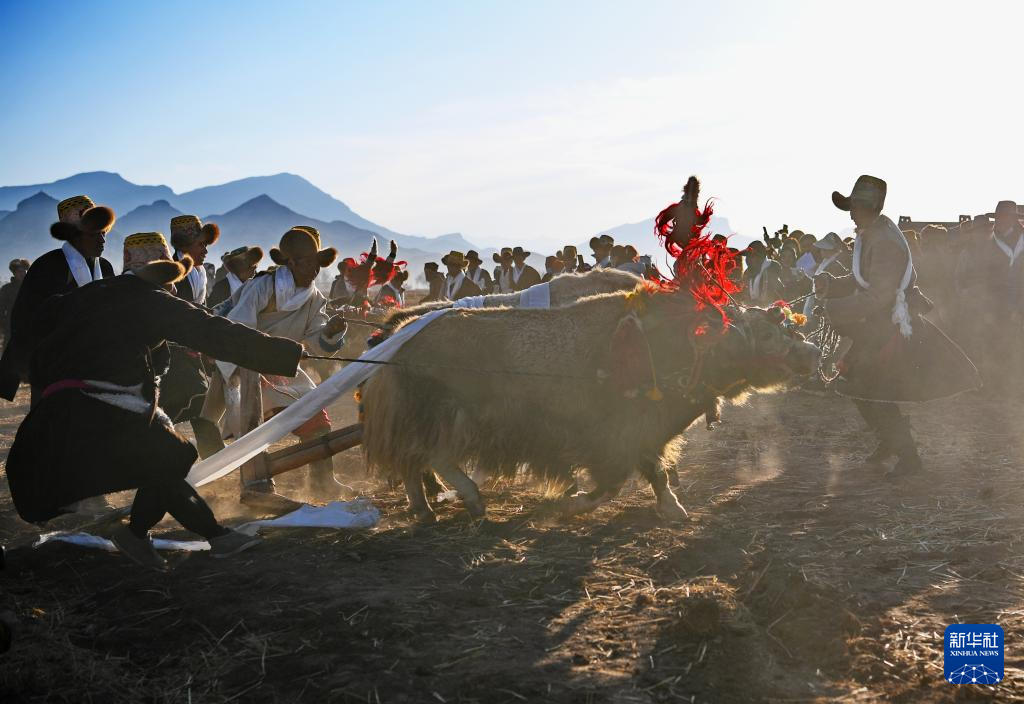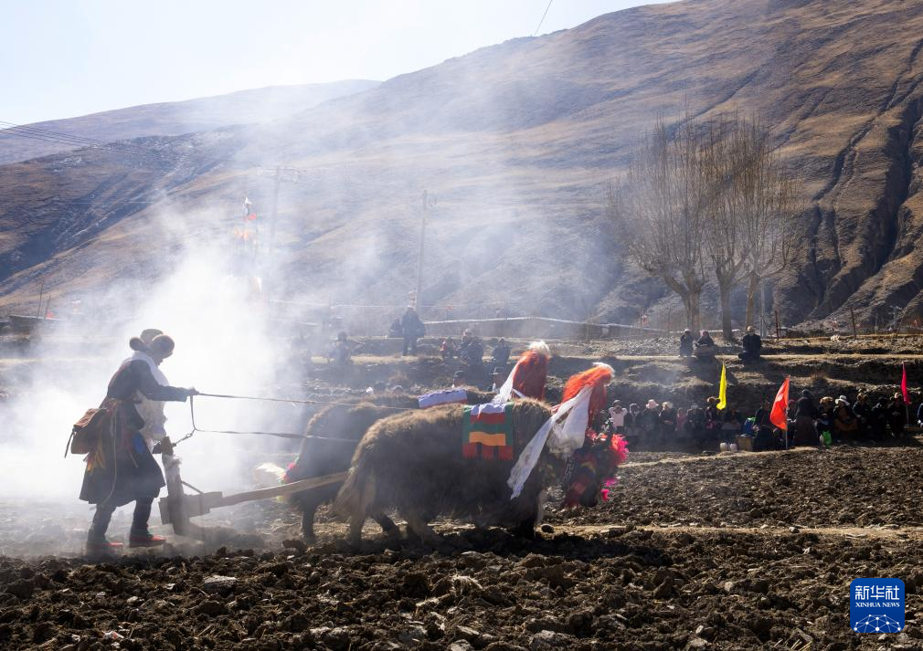 這是3月16日拍攝的西藏山南市瓊結(jié)縣加麻鄉(xiāng)加麻村的春耕儀式現(xiàn)場。新華社記者 旦增尼瑪曲珠 攝 ??
