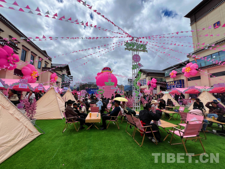 圖為游客在主會(huì)場(chǎng)工布天街公園“桃花嘉年華”現(xiàn)場(chǎng)體驗(yàn)營地。攝影:德吉卓瑪