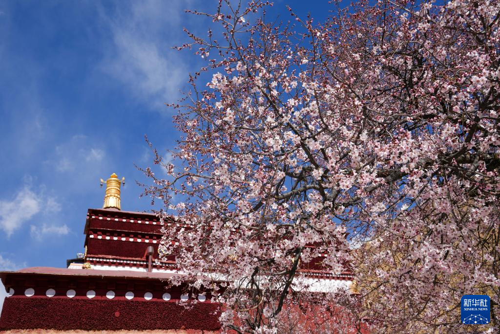 拉薩古剎帕崩崗周圍桃花盛開(4月5日攝)。新華社記者 旦增尼瑪曲珠 攝