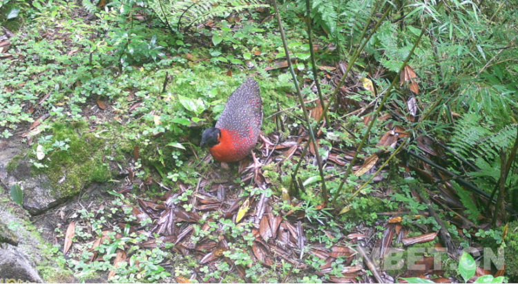 圖為紅外相機拍攝到的 紅胸角稚。