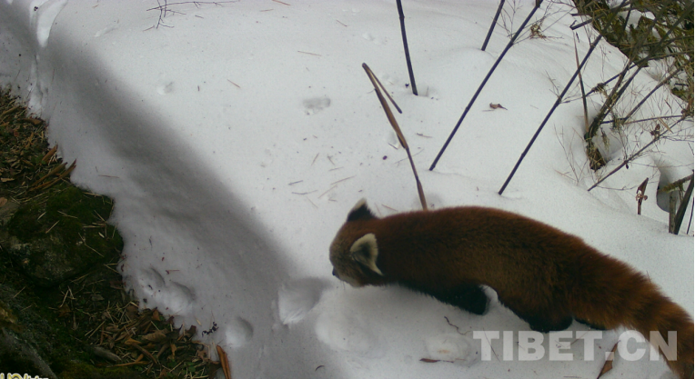 此外,紅外相機精準拍到了一只赤麂(國家重點保護野生動物名錄二級)正穿梭叢林的畫面,它臉部較狹長,額部V字形黑紋特別明顯,四肢細長,額頂的相應部位微有突起,并有成束的黑毛。在不同的地點還拍到了喜馬拉雅小熊貓(國家重點保護野生動物名錄二級)的覓食畫面?! ?/p>