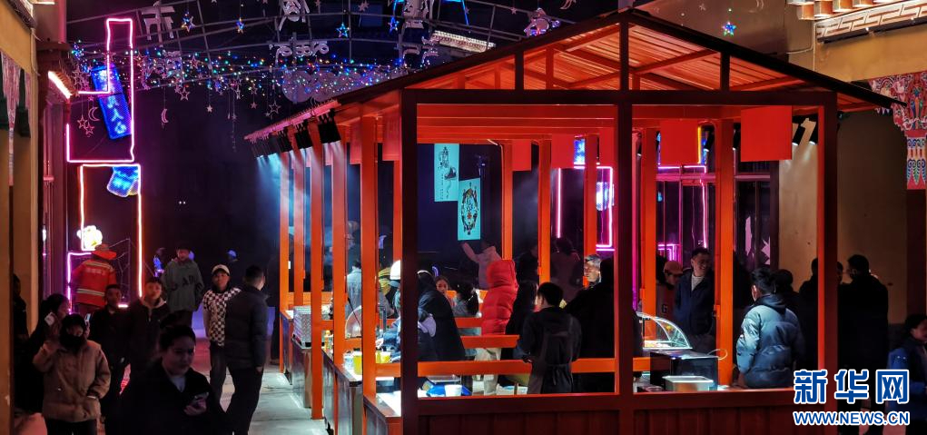 這是第十屆俄西杏花文化旅游宣傳周期間,洛隆縣夜市的熱鬧場景(4月15日攝)。新華社發(fā)
