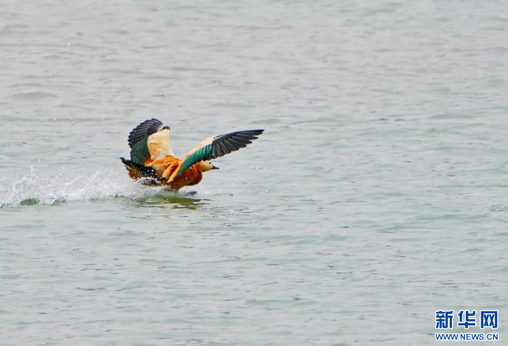 虎頭山水庫里的赤麻鴨(4月24日攝)。新華社記者 張汝鋒 攝