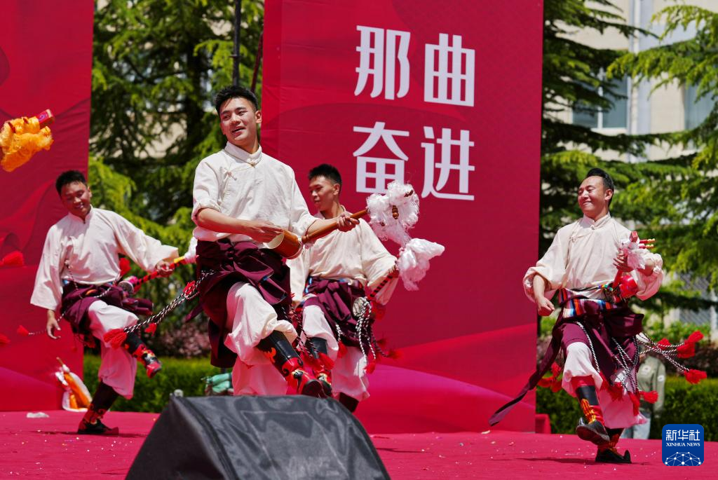 5月12日,在西藏職業(yè)技術(shù)學(xué)院職業(yè)教育活動周啟動儀式暨比如縣非物質(zhì)文化遺產(chǎn)進校園活動上,比如縣民族藝術(shù)團的演職人員在表演節(jié)目。新華社發(fā)(趙大志攝) ??