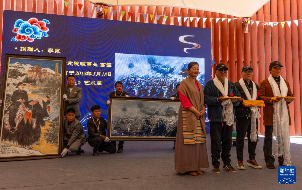 5月18日,吳雨初的友人為西藏牦牛博物館捐贈瓷畫《“亞格博”在西藏》。新華社記者 姜帆 攝 ??