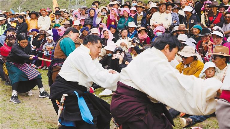 恰拉山以北的林周縣境內(nèi),處處是一片湖光山色交相輝映、風(fēng)吹草低見牛羊的美景,熱振國家森林公園、旁多水庫、生態(tài)長廊阿堆溝等旅游景點(diǎn)集中在北部三鄉(xiāng)?!袄_紛四季·多彩林周”活動(dòng)在林周縣唐古鄉(xiāng)藏雄村舉辦。從拉薩出發(fā),驅(qū)車170公里,翻越海拔5000多米的恰拉山。一路上,古柏環(huán)繞,云霧繚繞,漫山遍野的杜鵑花競相綻放,宛如進(jìn)入了世外桃源。