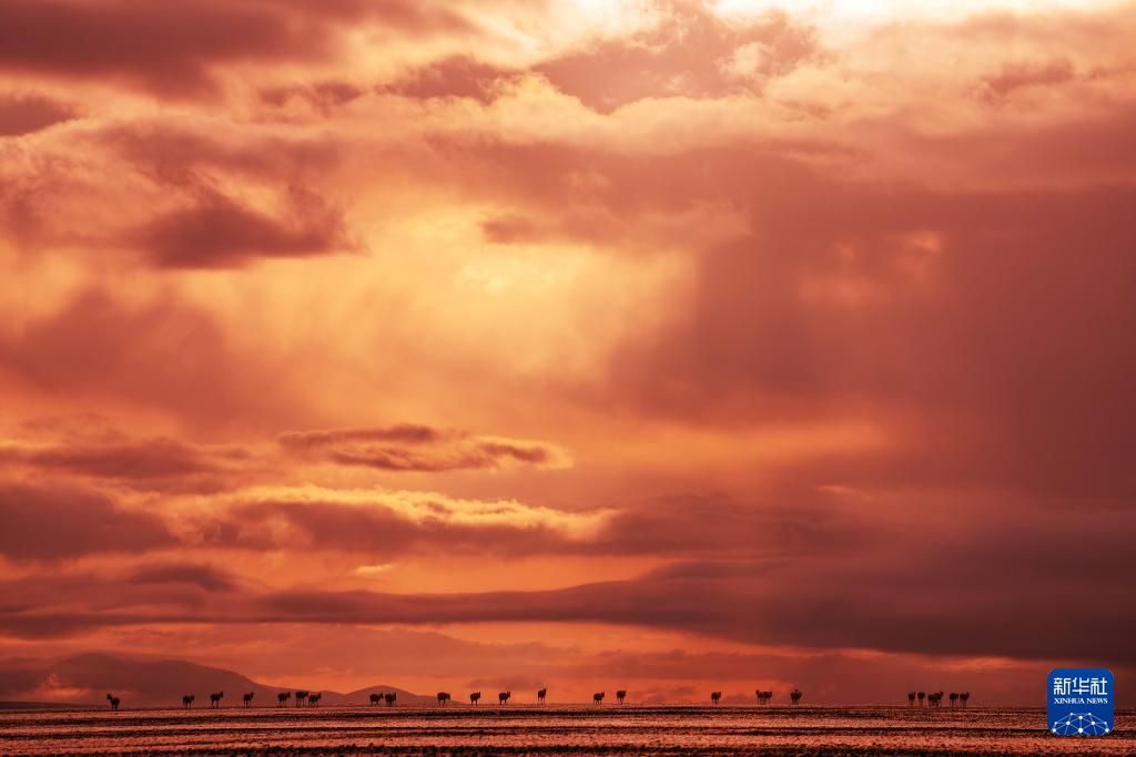 6月13日傍晚,在羌塘國家級(jí)自然保護(hù)區(qū),一群藏羚羊在遷徙。新華社記者 費(fèi)茂華 攝